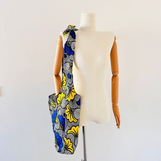 Sac africain fleurs jaunes-bleues - Hobo Bag en wax