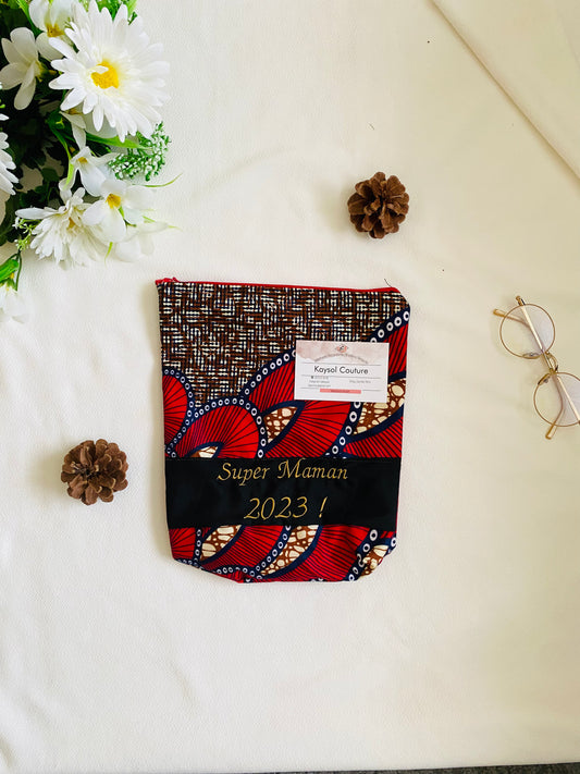 Pochette wax personnalisée - Super maman 2023