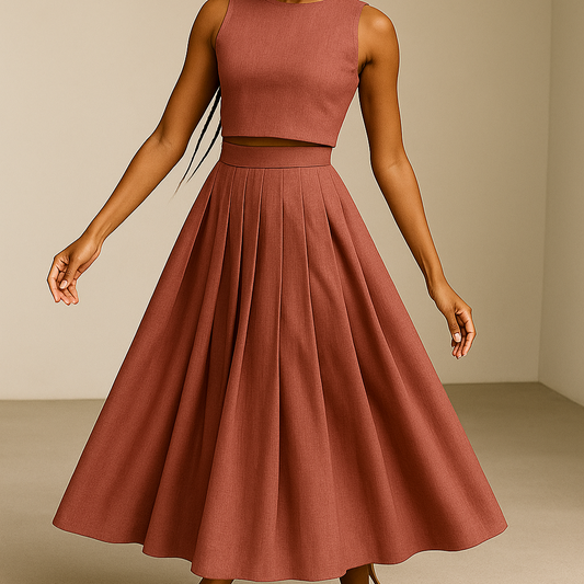 PDF Patron Couture – Ensemble Top + Jupe Taille Haute Fendue - 12 Tailles