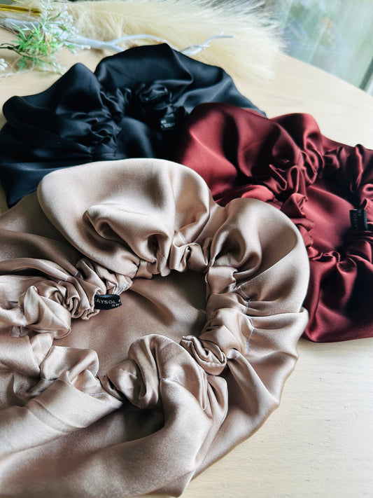 Duo de Chouchous satin noir doré marbré - Touche Soie premium – Taille XS & M