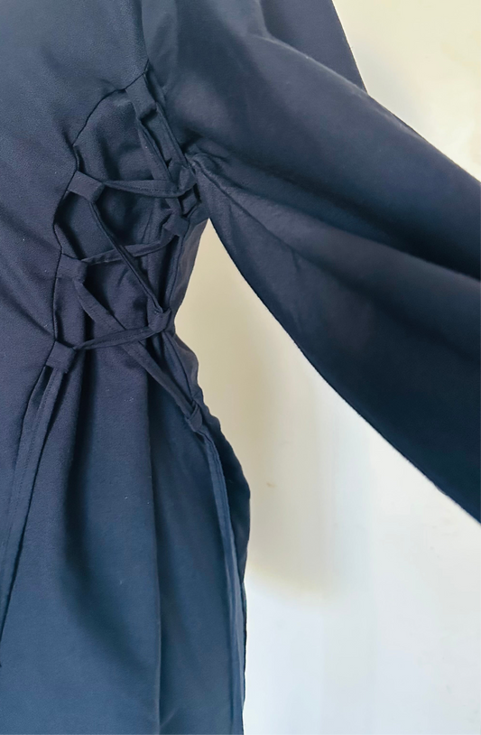 Robe modeste en lin bleu marine – Coupe ample et laçage ajustable