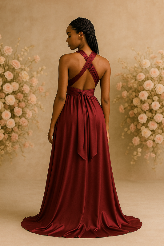 Robe Demoiselle d’honneur en Satin Bordeaux - Infinity
