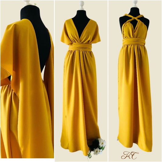 Robe infinity jaune Moutarde - Robe demoiselle d’honneur Convertible