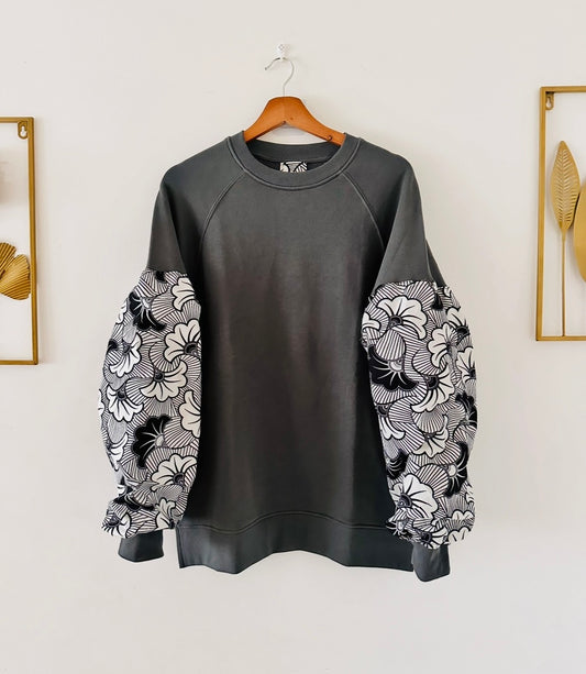 Sweat wax gris / Hoodie detail tissu wax / pull africain / Mixte