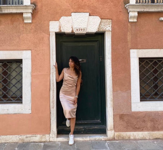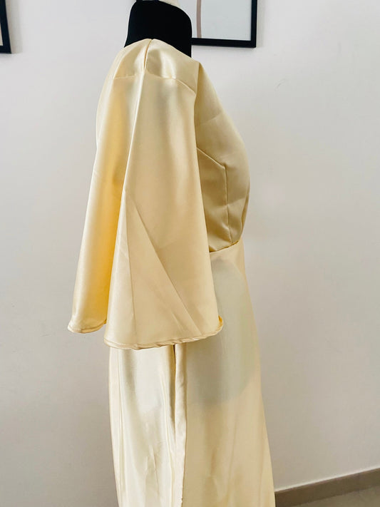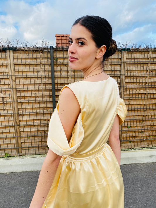 Robe de Temoin mariage Beige Champagne - Robe Drapée en Satin