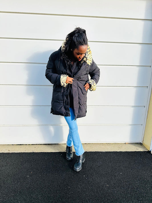 Doudoune Femme intérieur Wax Bogolan - Noir-Beige - Mode africaine