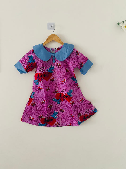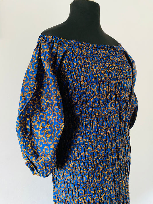 Robe Élastique droite en wax - Manches bouffantes chic - Wax bleu