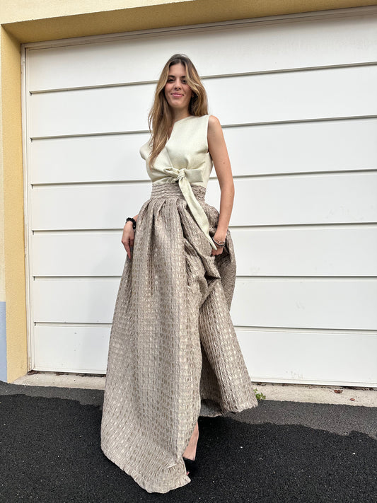 Gilet femme sans manches beige brocart pailletée - Capsule Source