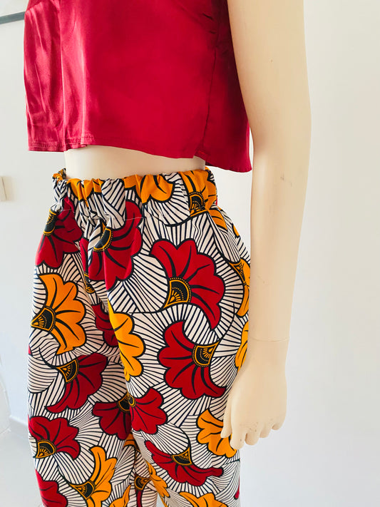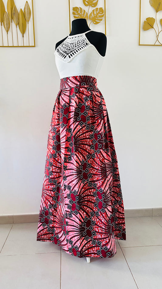 Jupe Maxi fleurie rouge rose - Jupe en Wax