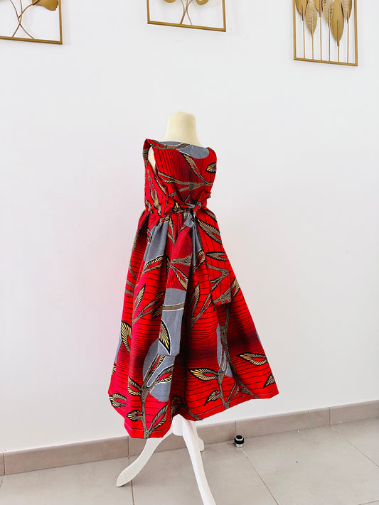 Jupe en wax enfant - Avec noeud papillon - Tissu wax rose