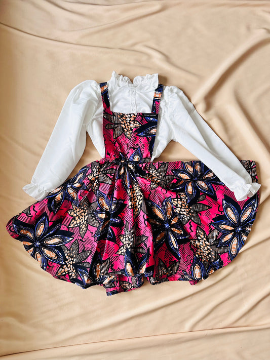 2 pièces enfant en Wax - Robe et chemise - Wax fleurie rose