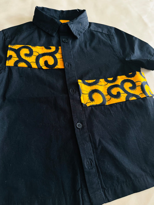 Ensemble enfant garçon Idriss – Wax jaune et noir – Chemise + pantalon – Fait main