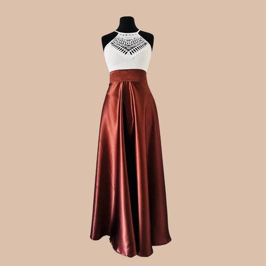 Jupe Longue en Satin Marron - Tenue de soirée femme - Tenue Invitée Mariage