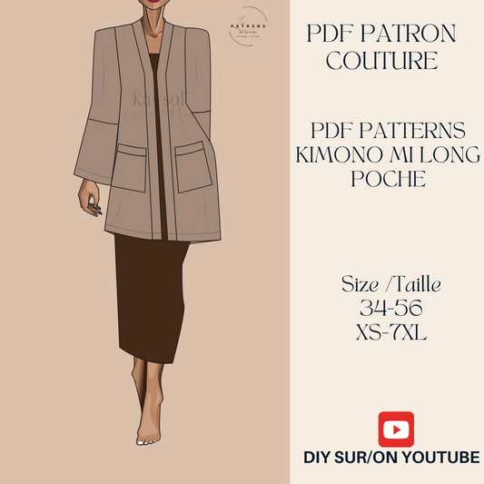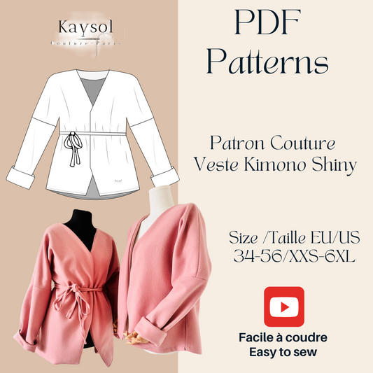 Patron Couture Veste Kimono femme - Patron pdf - Instruction en Video - 12 tailles - EU-US