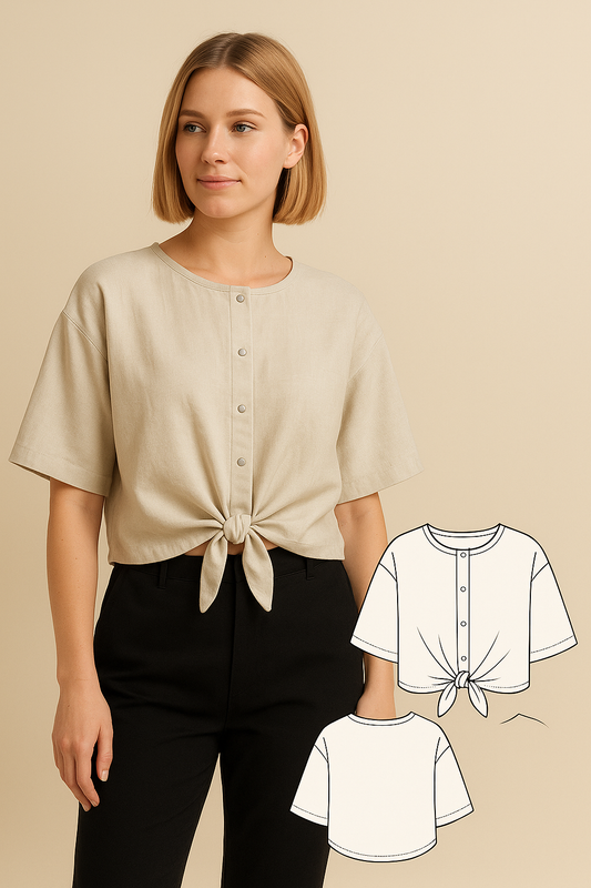 Patron PDF Top Maggy – Top court à nouer devant, XS–7XL, Débutant