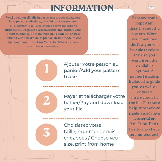 Patron chemise vintage – Chemise Oversize manches courtes (34–56) - PDF / A4/A0 / Trilingue