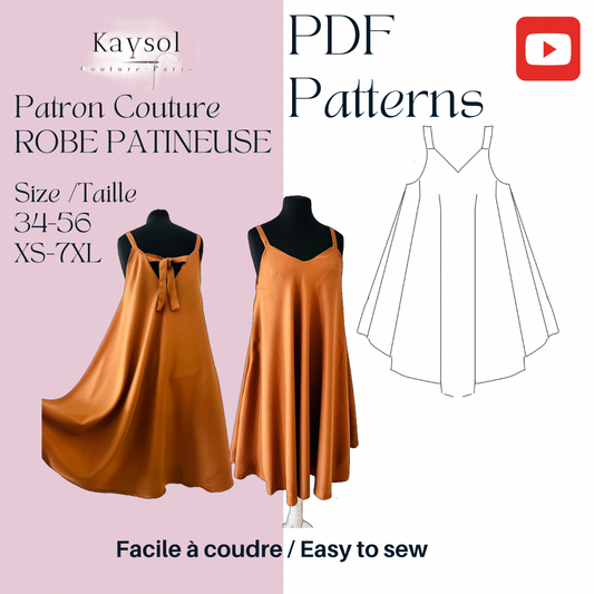 Patron couture PDF robe femme – modèle Penda facile à coudre | Tailles 34 à 56 / XXS/7XL
