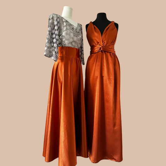 Jupe Longue en Satin Marron - Tenue de soirée femme - Tenue Invitée Mariage
