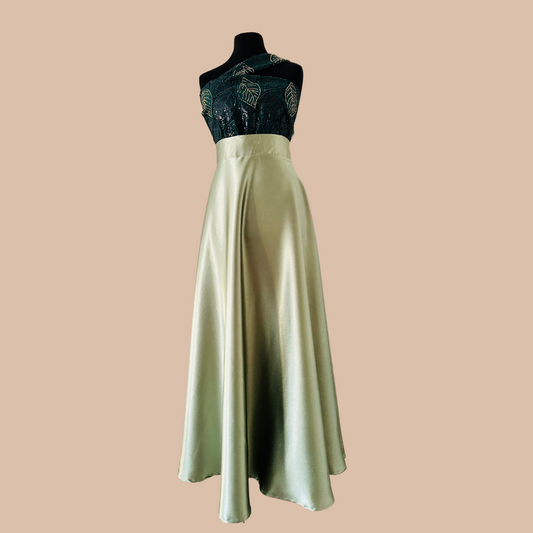Jupe Patineuse longue en Satin Sauge - Jupe longue en Satin Vert - Jupe Vert Sauge
