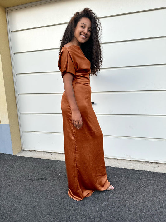 Robe en satin Marron cuivrée