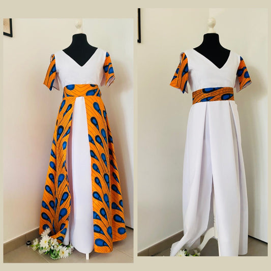 Robe de mariée traditionnelle blanche et en wax