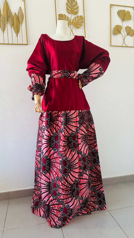 Robe Élastique droite en wax - Manches longues Bouffante - Orange