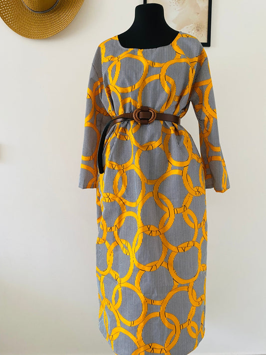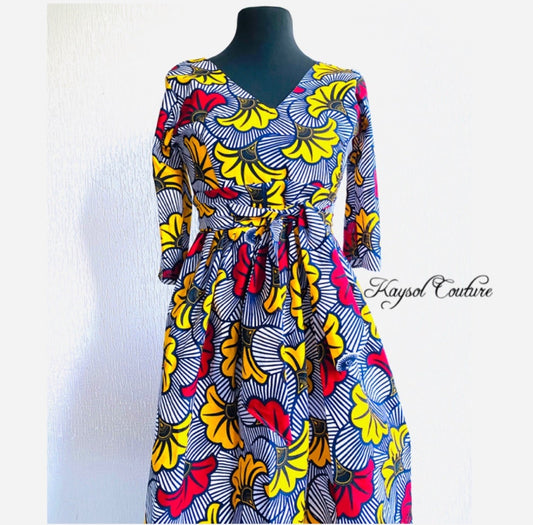 Robe Convertible en wax - Fleurs jaunes et bleues