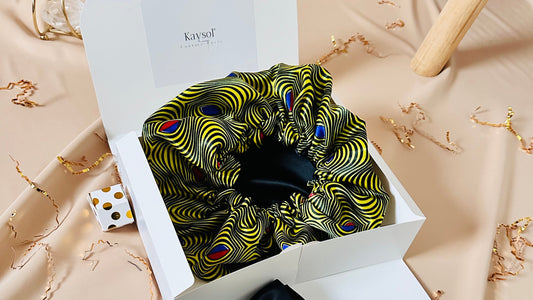 Bonnet en Satin jaune - Taie en satin - Chouchou - Coffret cadeau