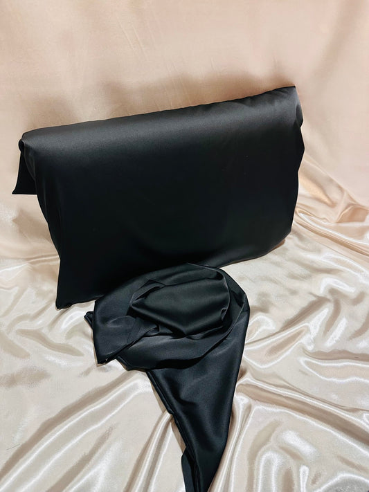 Taie d'oreiller en soie noire suprême - 100% Soie de mûrier - 19 Mommes