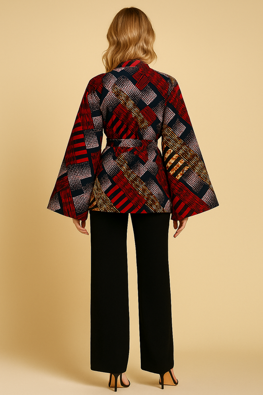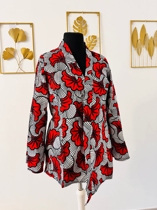 Veste kimono en Wax / Veste africaine / Tissu Wax rouge