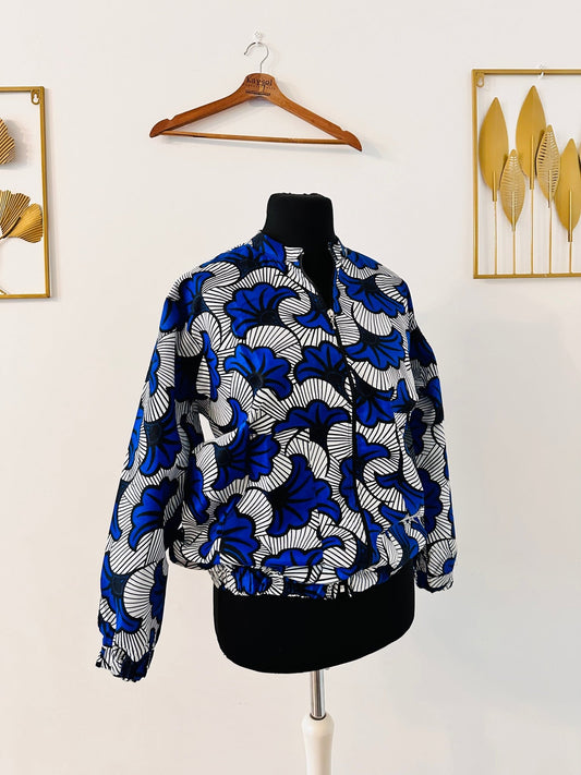 Bomber en Wax mixte - Avec poches - motif Fleurs de mariage