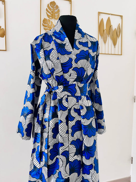 Veste Kimono en Wax _ Bogolan noir et blanc - Avec Ceinture