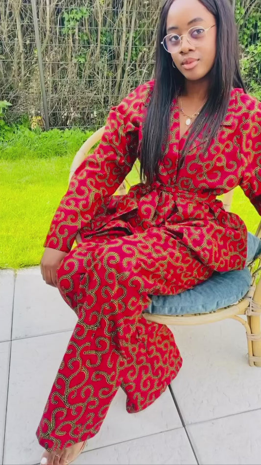Ensemble deux pièces blazer en Wax - Pantalon large Wax rouge