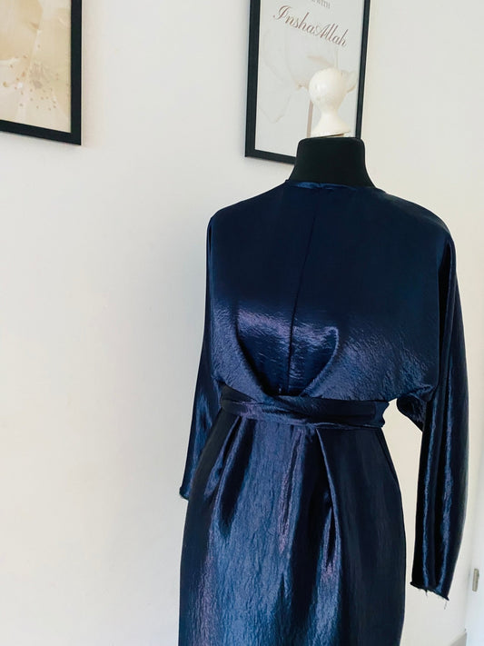 Robe demoiselle d’honneur manches longues - Robe Modest wear - En Satin bleu marine
