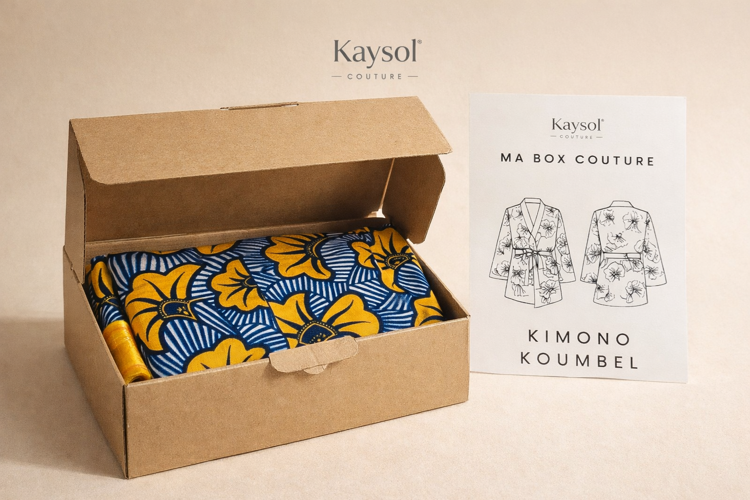 Box créative Couture | Coudre Kimono - Wax Jaune - Coffret couture complet