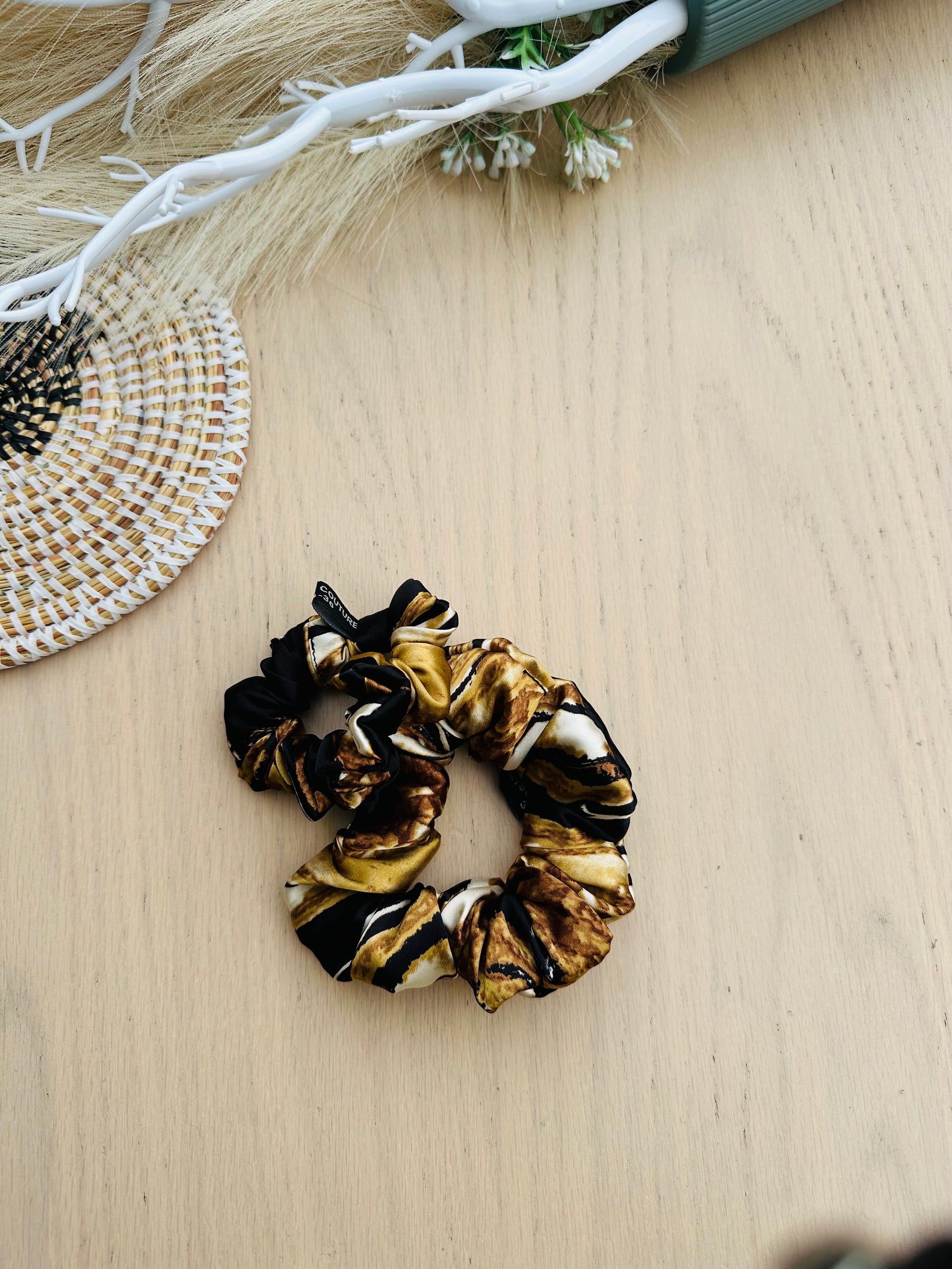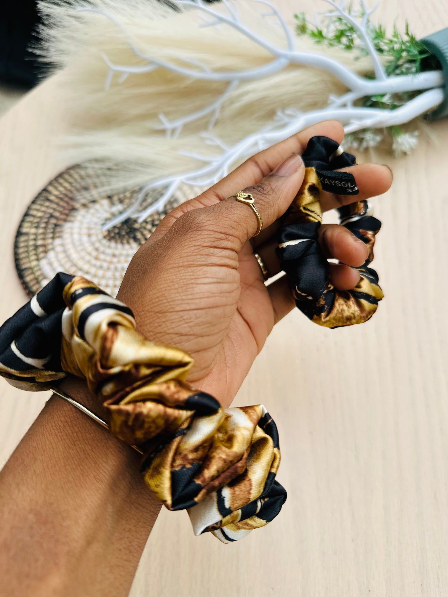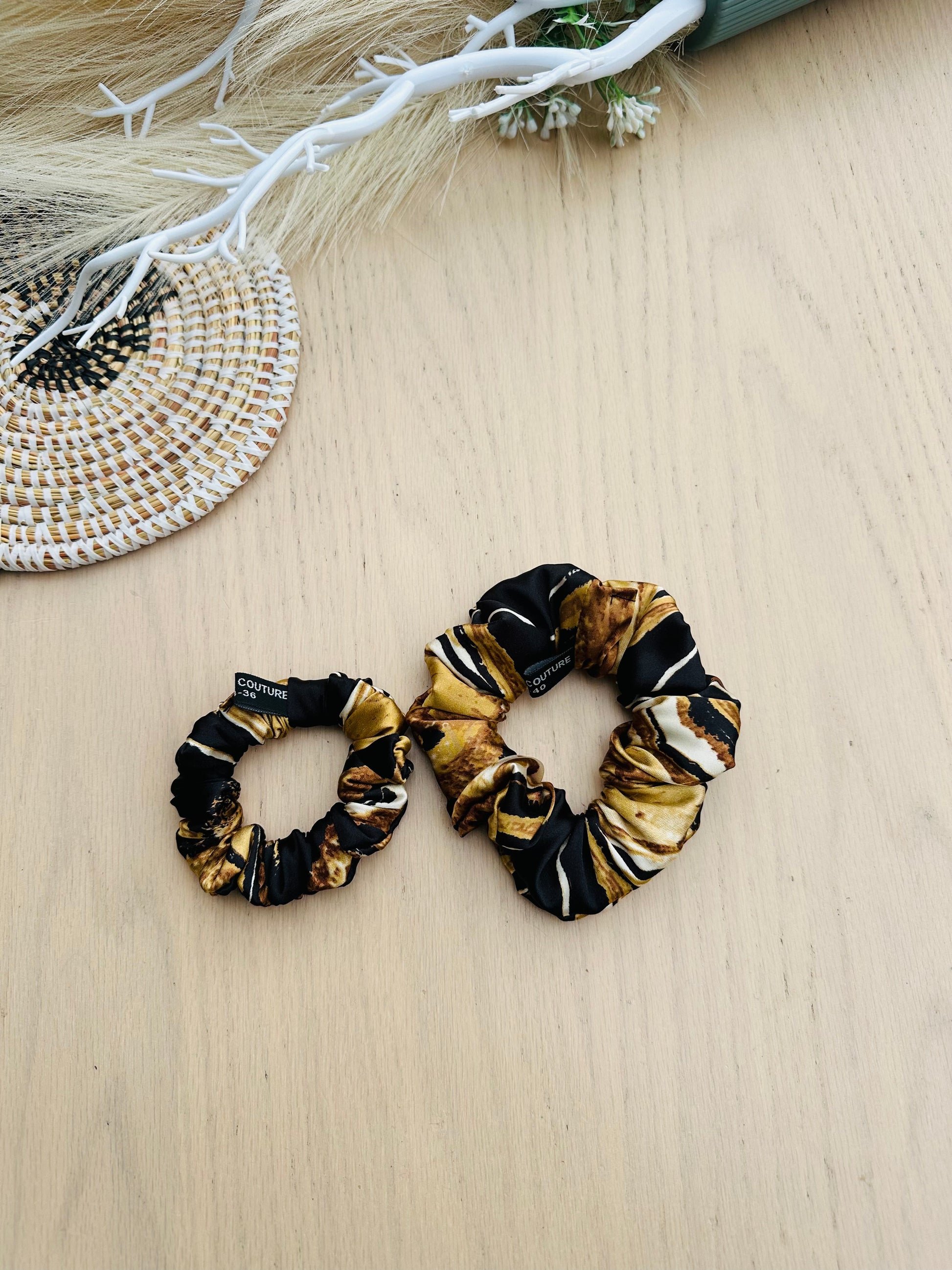 Duo de Chouchous satin noir doré marbré - Touche Soie premium – Taille XS & M