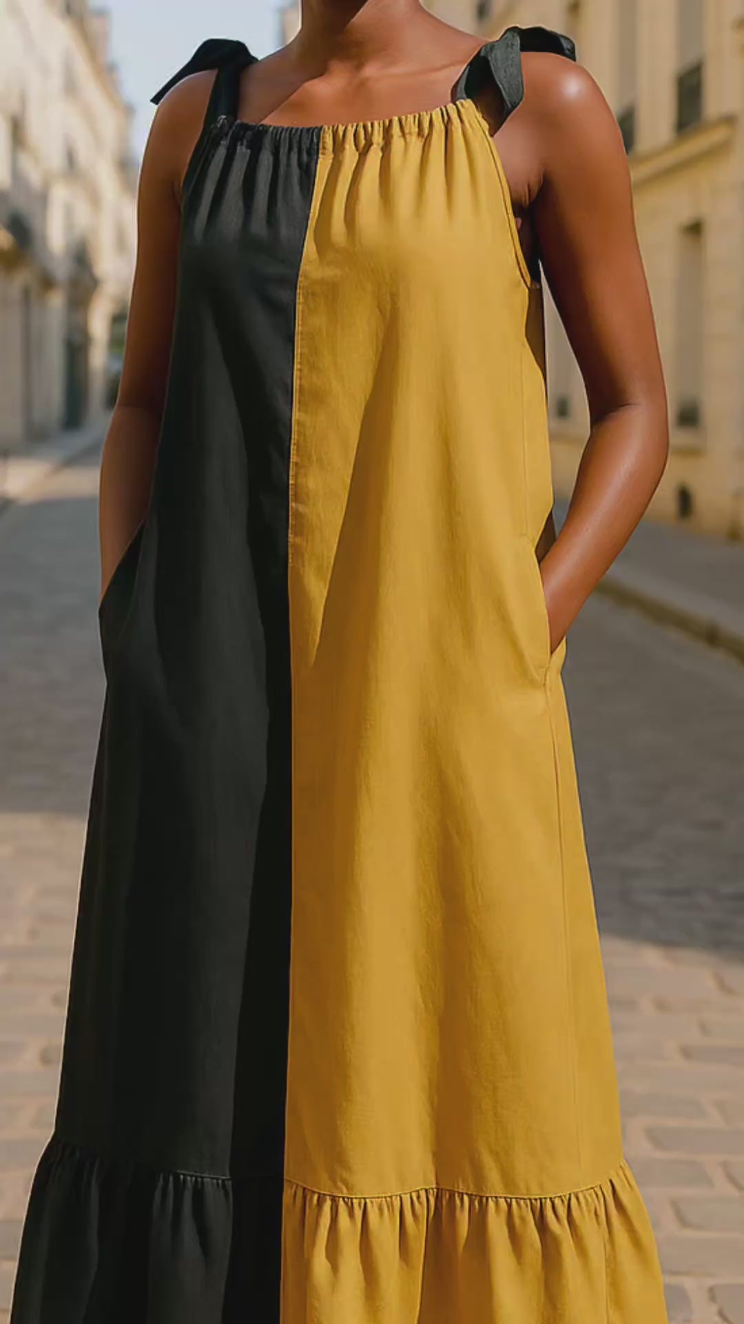 Bretelles : larges, nouées sur les épaules
