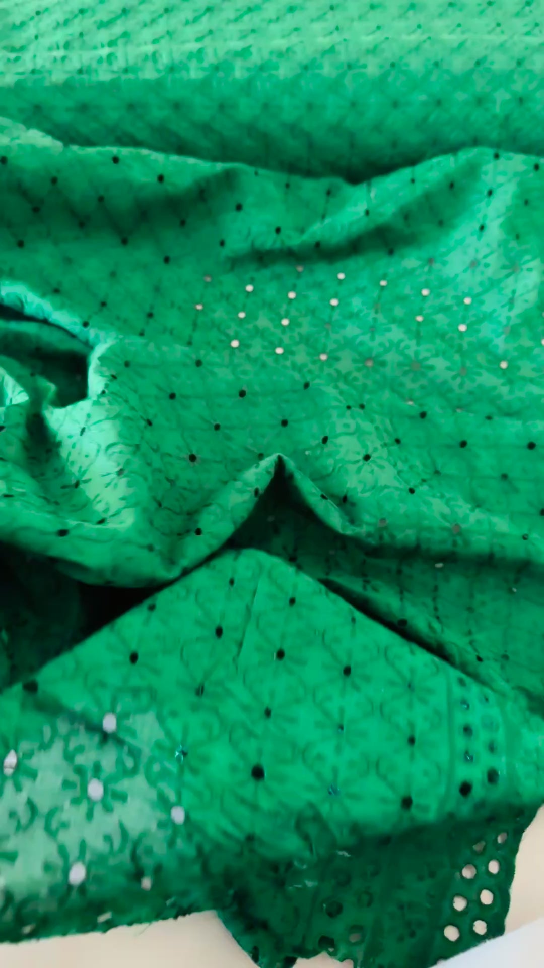 Tissu broderie anglaise vert émeraude – coton chic (mètre ou coupon)